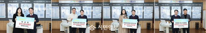 강진효요양병원은 임직원의 뜻을 모아 현금 100만 원을 기탁했으며, 김민갑 갑진갈비/갑돈 대표는 ‘강진 반값여행’ 혜택에 감사하는 의미로 현금 200만 원을 기부했다.