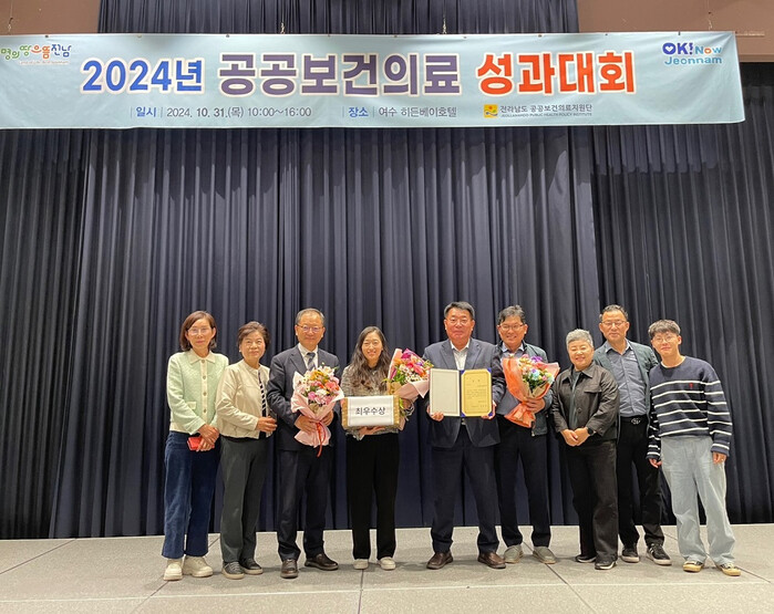 | ▲ 영암군, 지난 10월 31일 ‘2024년 전라남도 공공보건의료사업 성과대회’에서 공공보건의료사업 최우수기관상 수상 기념촬영 / 영암군 제공 |