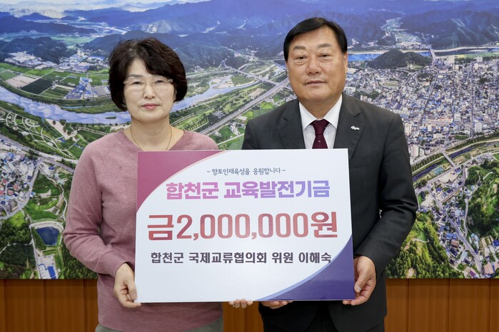 기탁식에서 이해숙 위원은 “자라나는 학생들이 꿈을 펼칠 수 있도록 돕는 것이 합천 발전의 밑거름이라 생각하며 교육발전기금을 기탁하게 되었다”면서 “학생들이 보다 나은 환경에서 공부하기를 바란다”고 말했다.