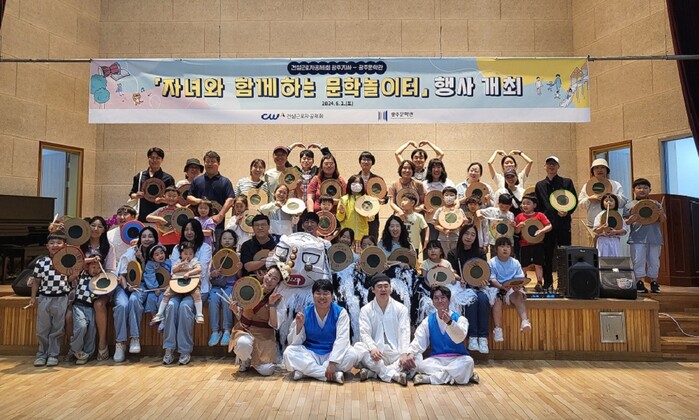 | ▲ 광주문학관, 지난 1일 광주문학관에서 '건설근로자 가족과 함께하는 문학놀이터' 운영 기념촬영 / 광주광역시 제공 |