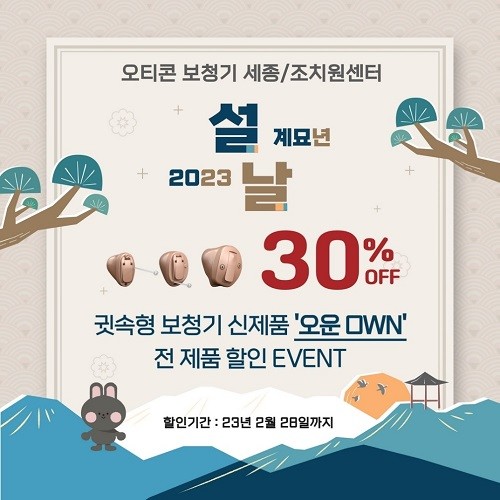 이번 행사는 2월 28일까지 진행되며, 새롭게 출시될 귓속형 보청기 오운(OWN) 전 제품에 대해 30% 할인 혜택이 제공된다.