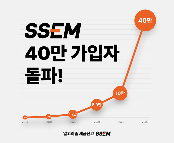 특히, 올 해 1월 부가가치세 확정신고 기간에 SSEM에 가입한 신규 고객은 13만 명으로 전년 동월 대비 7.9배 이상 폭발적으로 증가했으며, 지난 2020년 1.2만 명의 누적가입자를 기록한 이후 3년만에 누적가입자가 약 33배 이상 늘어난 것으로 나타났다.