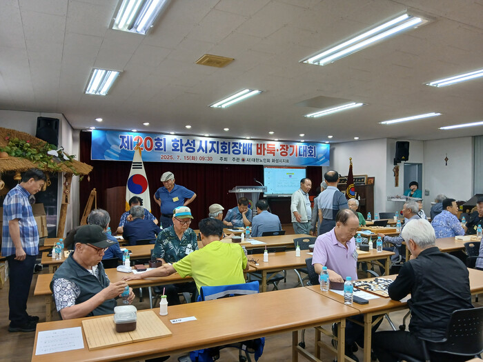 올해로 20번째를 맞는 이 대회는 화성특례시가 후원하고 대한노인회 화성시지회의 주최·주관으로 진행됐으며 읍면동별로 바둑 18명, 장기 14명 총 32명의 어르신들이 선수로 참가하여 두뇌 싸움과 화합의 시간을 가졌다.