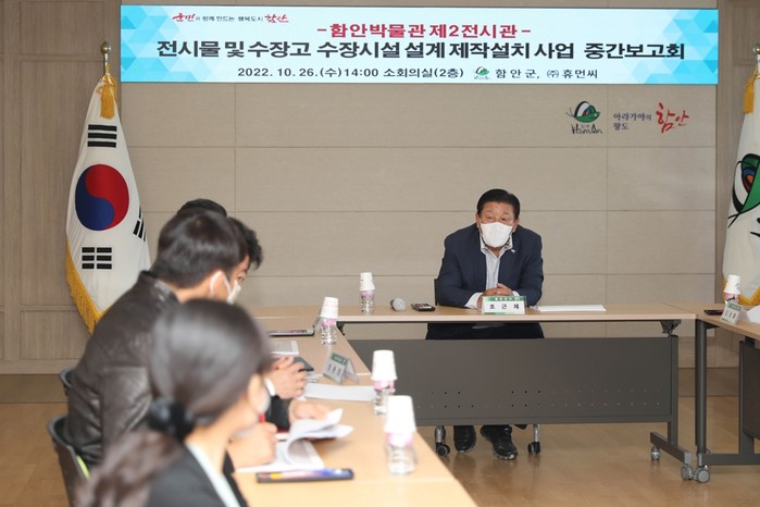 조근제 함안군수가 주재한 이날 보고회에는 관련 부서장 및 담당공무원, 수행업체 등 관계자 10여명이 참석해 수행기관인 주식회사 휴먼씨의 함안박물관 제2전시관 전시 및 수장시설 관련 기본설계 및 사업 추진상황을 듣고, 각 세부분야별 의견을 공유하는 시간을 가졌다.