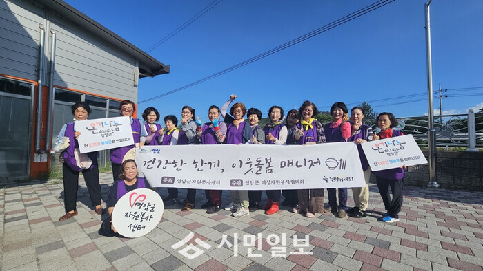| ▲ 은둔형 독신가정을 돌보는 이웃 돌봄 매니저 사업에 참여한 영암군자원봉사센터 및 여성자원봉사협의회 관계자 기념촬영 / 영암군 제공 |