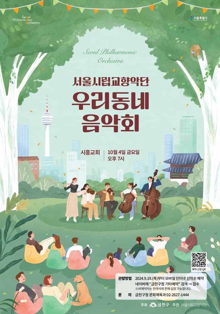 [시민일보 = 여영준 기자] 서울 금천구(구청장 유성훈)는 오는 10월4일 오후 7시 시흥교회(금하로 11길 14)에서 서울시립교향악단(이하 서울시향)의 무료 공연 ‘우리 동네 음악회’를 개최한다고 밝혔다.
