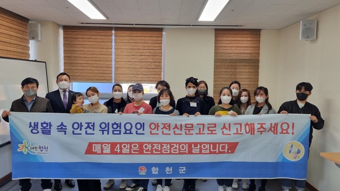 서문병관 안전총괄과장은 “생활 속 위험요소를 사전에 발견 및 신고하여 합천군이 안전한 도시로 거듭날 수 있도록 적극 신고를 당부드린다”고 전했다.
