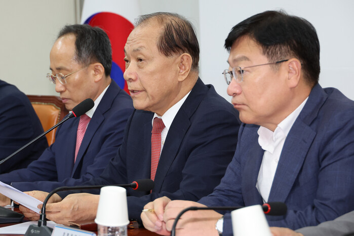 같은 회의에 참석한 추경호 원내대표도 "민주당은 매일 이런 식으로 법망을 요리조리 피하는 꼼수 연구에만 혈안이 된 집단 같다"며 "민주당이 국회 규칙을 개정한다면 위법이고 위헌적"이라고 가세했다.