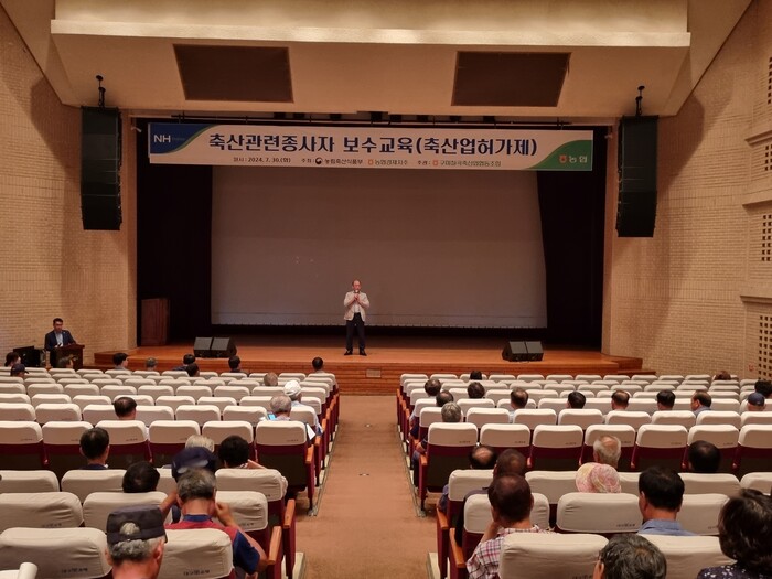 이번 교육은 구미칠곡축산업협동조합(조합장 장영익) 주관으로 진행되었으며, 2024년 축산업 허가(등록) 보수교육을 미이수한 농가 300명이 참석하였다.