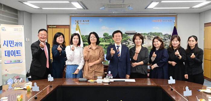 조규일 진주시장은 지난 16일 시청 5층 기업인의 방에서 ‘미래세대 행복기금’ 우수학생 해외선진문화탐방사업으로 탐방을 다녀온 장학생 학부모 8명과 10월 시민과의 데이트 시간을 가졌다.