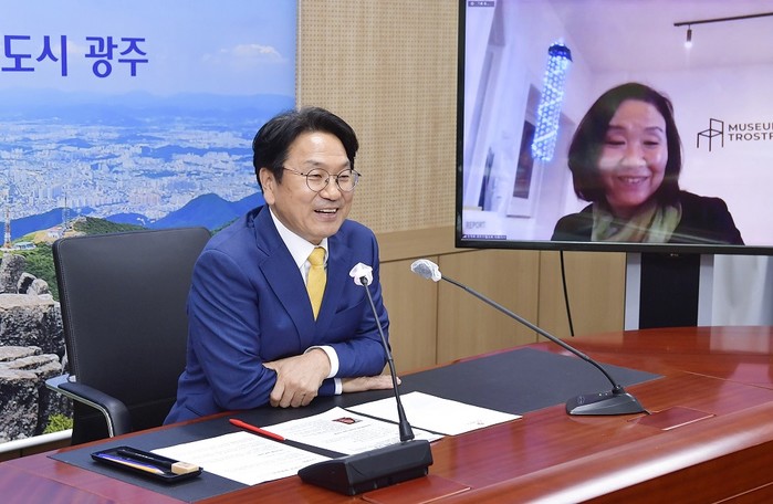 강기정 시장은 지난 29일 오후 시청에서 5·18민주화운동을 유럽에 알리는데 앞장서온 독일 코리아협의회 한정화 대표이사와 화상회의를 진행하고 5·18 기념일 지정 및 교류 확대 협력 방안 등을 논의했다.