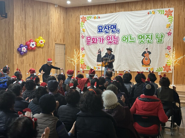 특히, 2024년 한 해 동안 각종 행사에 참여한 주민들의 모습을 담은 영상 ‘2024년 묘산을 펼치다’와 통기타 공연은 주민들에게 큰 감동을 선사하며 행사장을 가득 메운 관객들의 뜨거운 호응을 얻었다.