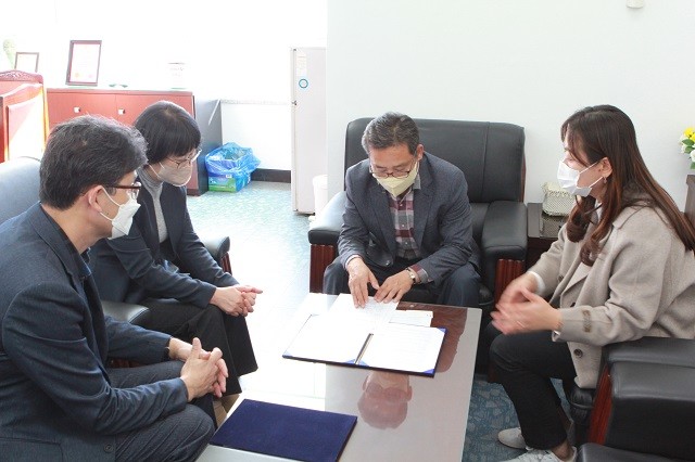 | ▲ 강진군농업기술센터, 국내 딸기폿트 전문회사인 ‘화성산업’과 딸기 육묘판 기술이전 계약 / 사진=강진군 제공 |