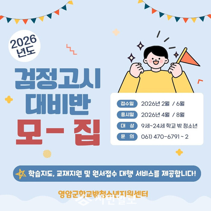 | ▲ 영암군학교밖청소년지원센터 검정고시 대비반 모집 포스터 / 영암군 제공 |