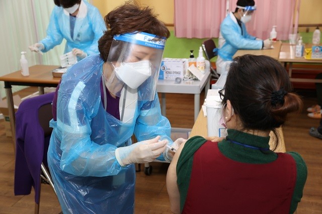 군은 최근 타 지역 주간보호센터에서 돌파감염사례가 발생함에 따라 관내 시설 4개소 76명을 대상으로 타 대상군보다 발 빠르게 접종을 완료했다.