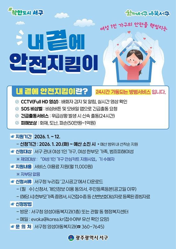 | ▲ 여성 1인 가구 ‘안전지킴이 사업 강화 포스터 / 광주광역시 서구청 제공 |