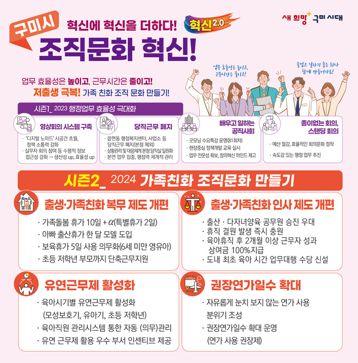 올해 구미시는 극대화된 행정 효율성을 바탕으로 저출생 위기 극복과 출생‧가족 친화 조직문화 만들기에 주력할 계획이다.