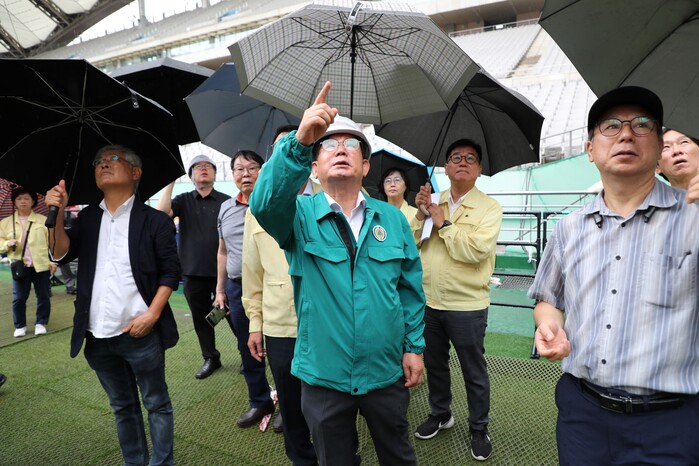 우선 지난 10일 오전 구는 마포구 안전관리자문단 건축구조분야 민간전문가들과 폐막행사가 열리는 상암월드컵경기장을 찾아 K팝 공연 무대시설 설치현황을 관계자들과 함께 합동점검하고 문화체육관광부와 KBS, 서울시시설관리공단에 보강조치를 요청했다.