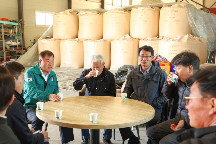 이승화 산청군수는 첫 매입을 실시하는 신안면 영실영농조합법인 현장을 찾아 수매농가와 소통의 시간을 가졌다.