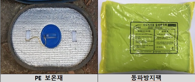 이번에 지급되는 PE보온재와 동파방지팩은 스티로폼 조각과 방습제를 비닐팩에 담아 밀봉한 형태로, 수도계량기 위에 덮은 후 뚜껑을 닫기만 하면 간편하게 설치할 수 있다.