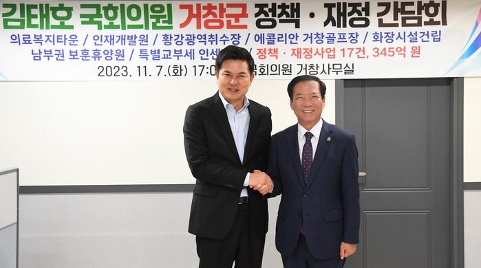 이에 김태호 국회의원은 “지역의 정책 사업과 재정 건의 사업이 최대한 반영될 수 있도록 심혈을 기울이겠다”라고 화답했다.