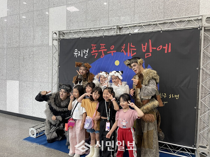 | ▲ 영암어린이들이 '뮤지컬 폭풍우 치는 밤에 '공연 출연 배우와 기념촬영 / 영암군 제공 |