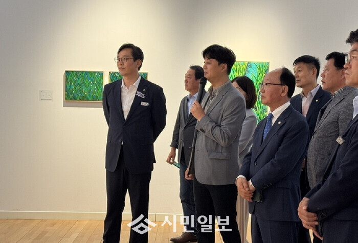 | ▲ 우승희 영암군수(왼 쪽 첫 번째), 송지윤 작가 작품전 개막식 참관 자료사진 / 영암군 제공 |