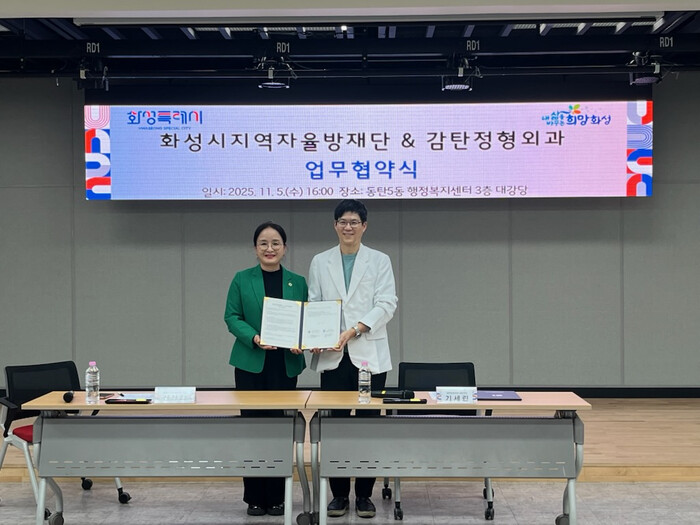 한편, 화성시자율방재단은 재난·재해 발생 시 신속한 대응과 예방 활동을 수행하는 민간 자율조직으로, 지역 안전망의 핵심 역할을 담당하고 있다. 시는 이번 협약을 통해 단원 복지 강화는 물론, 더욱 안전한 도시 조성에 기여할 것으로 기대하고 있다.