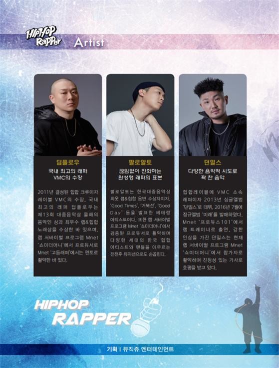 국내 최고의 래퍼이자 힙합 레이블 ‘VMC’의 수장 ‘딥플로우’, 끊임없이 진화하는 완성형 래퍼의 표본 ‘팔로알토’, 다양한 음악적 시도로 속이 꽉 찬 음악을 하는 ‘던밀스’등 인기 TV 프로그램 ‘SHOW ME THE MONEY’출신의 래퍼 3인이 출연해 힙합을 향한 무한 열정과 에너너지 넘치는 무대를 선보인다.