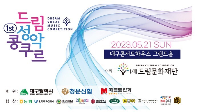 재단법인 드림문화재단(이사장 장기진)은 제1회 드림성악콩쿠르를 21일 대구콘서트하우스 그랜드 홀에서 갖는다고 19일 밝혔다.