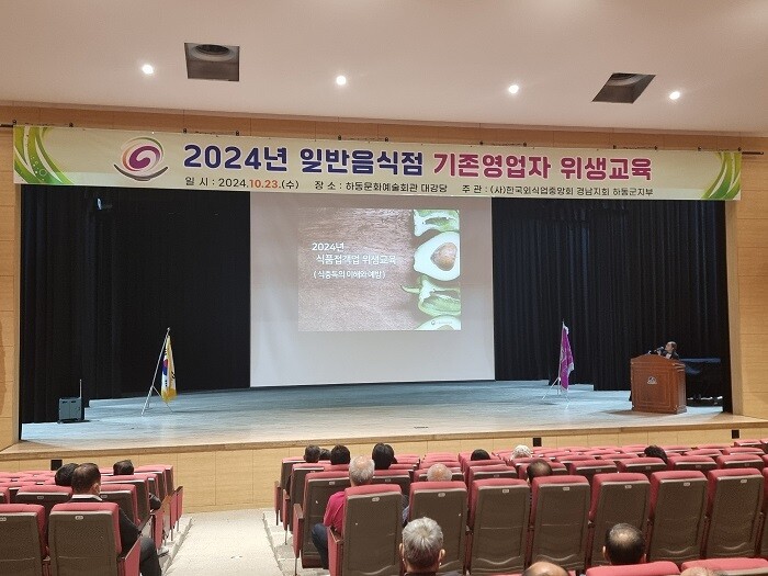 이번 교육은 식품위생법에 따라 기존영업자를 대상으로 매년 3시간 필수 이수해야 하는 법정 의무교육으로, (사)한국외식업중앙회 하동군지부(지부장 배정자)가 주관했다.