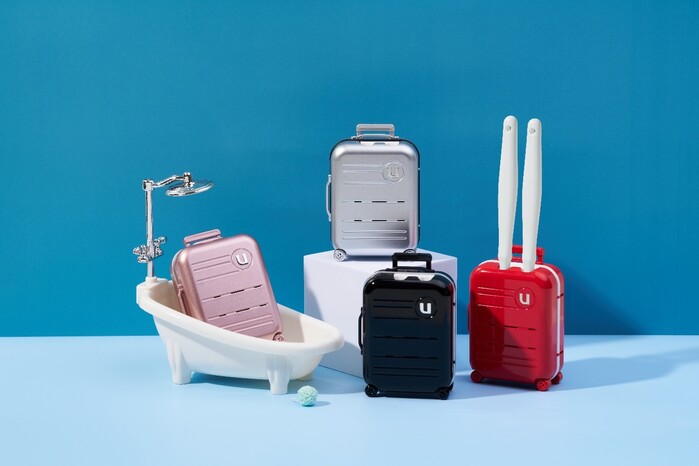 신제품 캐리어 휴대용 칫솔살균기(UTC-3500)는 실제 캐리어 가방을 미니어처 같은 디자인과 강력한 UV-C LED(3분)과 히팅건조(4시간)로 99.9% 완벽하게 살균이 된다. 뿐만 아니라 가족과 연인 등 같이 사용할 수 있는 2구 타입의 휴대용 칫솔살균기다.