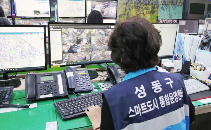 | ▲ 성동구청 스마트도시 통합운영센터 직원이 성수동에 설치된 인파감지 CCTV를 확인하고 있다. (사진=성동구청 제공) |