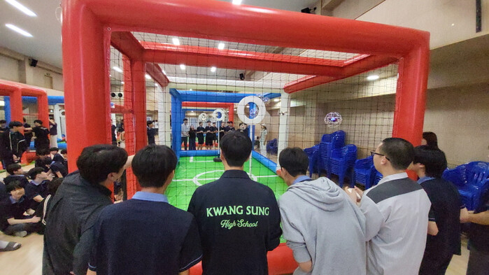 학생들은 18명씩 레드팀(4조) 블루팀(4조)로 나눠 드론의 기본 조작법을 익힌 뒤 실제 경기 형식으로 드론축구를 체험하였다. 참가자들은 조종기 조작, 방향 제어, 속도 조절 등 드론의 비행 원리를 배우며 과학적 사고력과 창의성을 키웠다.