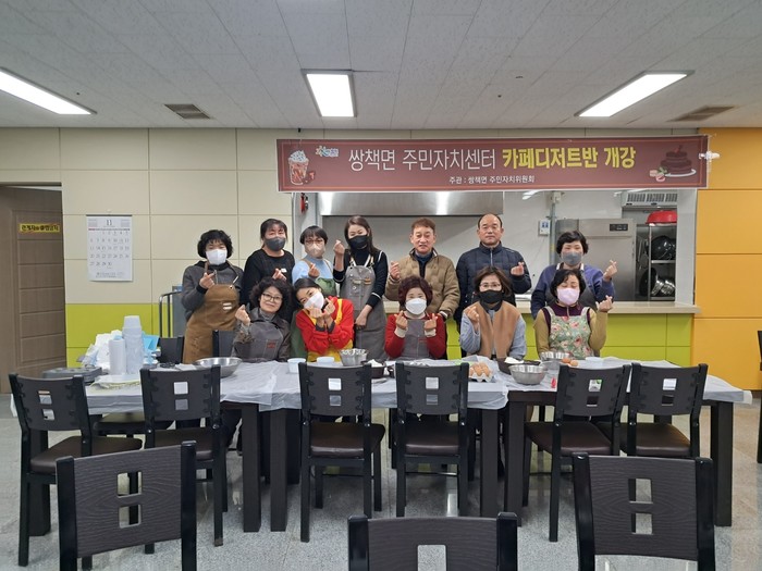 쌍책면 주민자치위원회는 지난 11월 「바리스타 2급 자격증반」에 이어 「카페디저트반」을 적극적으로 추진하여 지역 발전을 위하여 다각적으로 활동하고 있다.