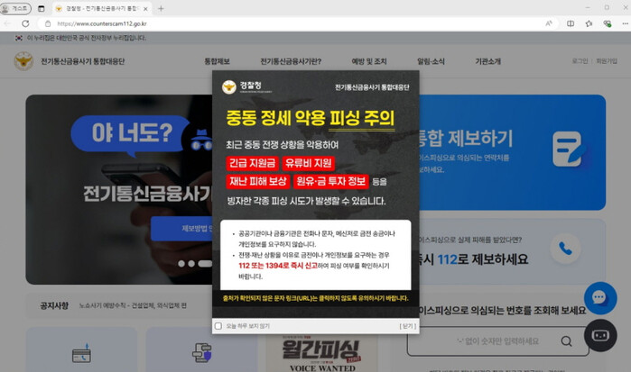 특히 이용자들이 바탕화면 하단 배너를 클릭하면 범죄예방 영상을 시청할 수 있도록 하고 전기통신금융사기 통합 신고 사이트로 바로 연결되도록 구성해 정보 전달성과 접근성을 함께 높여 효과가 기대된다.
