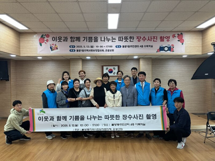 이날 행사는 지역사회보장협의체와 은광교회의 주관으로 진행됐으며 홀로 사시는 어르신 20명의 장수 사진을 촬영했다.