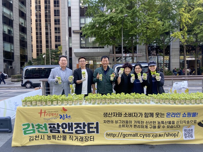 서울의 주요 관광지(경복궁, 광화문) 인근 청계광장에서 진행된 이번 행사는 일반 시민, 직장인, 관광객, 그리고 외국인들까지 찾아와 3,000여 명이 김천 샤인머스캣을 맛보기 위해 길게 줄을 섰다. 샤인머스캣에 대한 큰 관심으로 준비한 물량을 모두 소진하며 성황리에 행사가 종료되었다.