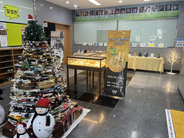 | ▲ 영암도서관, 한강 작가의 노벨문학상 수상 기념 역대 수상자들의 이력과 도서 전시 자료사진 / 영암군 제공 |