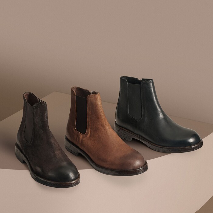 비즈니스 캐주얼룩부터 데일리룩까지 다양하게 활용 가능한 ‘빈티지 워커부츠’는 블랙, 탄, 진 밤 세 가지의 컬러로 출시됐다.