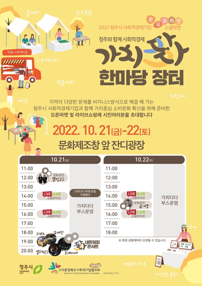또한, 사회적경제 우수제품 쇼핑라이브, 가치다다 네트워킹 콘서트 등 다채로운 프로그램도 운영한다.