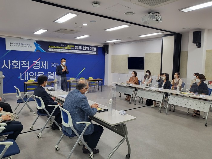 이를 위해 시는 여성, 노인, 다문화 등 취약 계층 정보를 보유한 △김해 복지 재단 △김해시종합사회복지관 △김해시 가족 센터 △김해시지역아동센터협의회 △김해사회적경제협의회 5개 기관과 지난 23일 업무 협약을 맺고 각 기관 실무자를 대상으로 ‘사회적 경제 이음 플랫폼’ 활용 실무 교육을 진행했다.