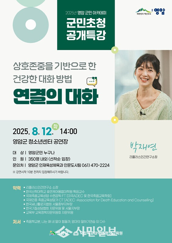 | ▲ 영암군민아카데미 박재연 대화훈련가 초청 특강 포스터 / 영암군 제공 |