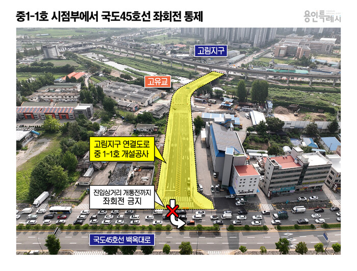 | ▲ 용인특례시 유림동과 고림지구를 연결하는 '중1-1호' 도시계획도로가 준공됐다_임시개통 기간동안에는 좌회전이 통제된다 |