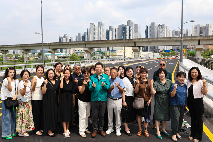 현장에는 고림지구 양우내안애에듀퍼스트 아파트와 힐스테이트용인고진역 아파트 주민 등 30여명의 시민들이 함께해 ‘고유교’ 등 도로 개통에 대한 감사의 뜻을 전했다.