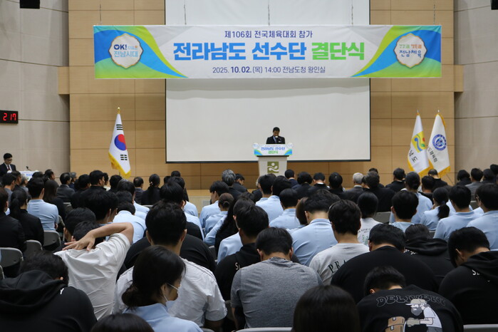 [남악=황승순 기자]전라남도선수단이 ‘제106회 전국체육대회’에서 종합12위 수성을 목표로 결단식을 갖고 필승 의지를 다졌다.