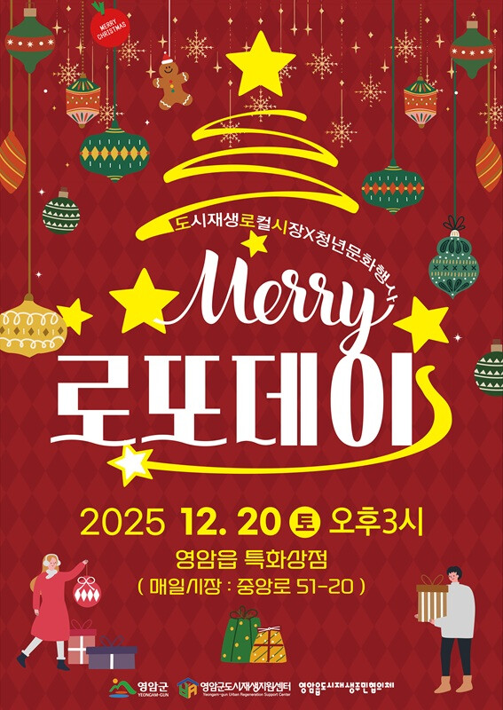 신환종 영암군 도시디자인과장은 “크리스마스를 맞아 온 가족이 함께 즐기고 추억을 남길 수 있도록 다채로운 공연과 체험 프로그램을 준비했다. 연말연시 참여형 프로그램에서 특별한 하루를 만들어 보길 바란다”고 추천했다.
