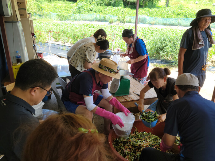 | ▲ 군포시 더플러스 봉사단은 지난 8월 22일 “군포시 거주 소외계층을 위한 사랑의 여름김치 담그기” 행사를 진행하고 있다 /사진제공=군포시 더플러스 봉사단 |