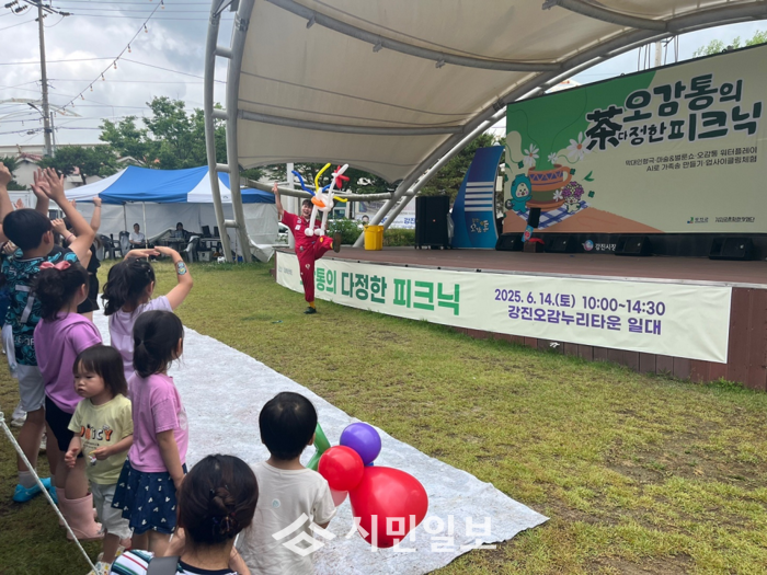 | ▲ ‘오감통의 다(茶)정한 피크닉’ 행사로 진행된 문화공연을 즐기고 있는 어린이들 / 강진군 제공 |