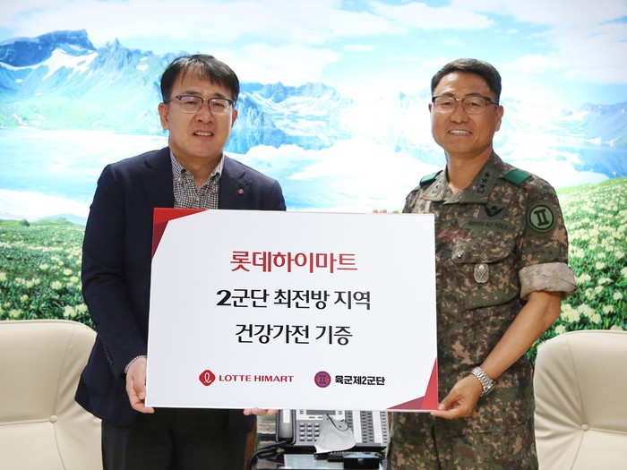 이날 기증식에는 롯데하이마트 황영근 대표이사, 육군 2군단 장광선 군단장이 참석했다.